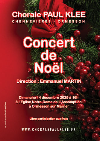 Dimache le 14 décembre 2025 à 16h00 à l'Eglise Notre-Dame de l'Assomption à Ormesson sur Marne Libre partitipation aux frais